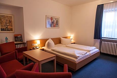 Hotel Schranne Your retreat in the heart of the old town. Our hotel is located in the picturesque old town, just a few steps from the most important sights and directly adjacent to beautiful cycling, hiking and jogging paths. The central location offers you the perfect combination of peace and proximity to the city's highlights - ideal for a relaxing stay. This family-run hotel is a 17th-century building at the heart of Rothenburg ob der Tauber's historic quarter, beside the old town walls. Traditional German cuisine is served here. The 3-star Akzent Hotel Schranne provides rooms with traditional wooden furniture and a private bathroom. There is a flat-screen TV in every room. A full breakfast buffet is served each morning.Bavarian and Franconian specialties are served in the restaurant or on the terrace. Hotel Schranne is a 10-minute walk from St. Jakob Church and the Klingentor Gate. Guests staying at the Akzent Hotel Schranne receive discounts at a spa, located just a 5-minute walk away. Private parking is available for a fee at the hotel. Enjoy a selection of regional specialties from Bavarian and Franconian cuisine in our cozy restaurant and in the summer in the charming Schrannengarten. We attach great importance to fresh, high-quality ingredients - our venison comes from local hunting and we source our meat from local farms. Seasonal delicacies such as asparagus or chanterelles are part of our varied offering, which is always characterized by regional authenticity. Whether for family celebrations, club meetings, groups or conferences - we can offer you suitable rooms on request to organize your event in a relaxed atmosphere. The name "Schranne" comes from the Old High German "scranna", which means grain barn. One of the city's large granaries used to be located in the immediate vicinity of the hotel. The current hotel building was built in the 17th century as the residence of a noble family and was later converted into an inn by the Meinold family. Over the years, the hotel has been constantly renovated and expanded, so that today it has 46 modern rooms, 5 restaurant halls, a beer garden and a parking area. We are continuously investing in the renovation of our hotel in order to always offer you the best possible comfort and a high level of security. Take a look at our current hotel brochure or take a look at the market square! We look forward to welcoming you!