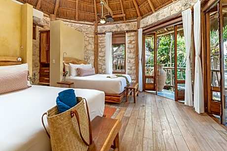 Located in the beach-side of Tulum, Alaya Tulum by Ahau Collection by Ahau features an on-site restaurant. The property has a special terrace to practice yoga and a private beach area with sun beds for the guests to use. The rooms are air-conditioned and feature a terrace. The full bathroom has a shower and includes free toiletries. A sofa, iPod dock and a safe that fits a laptop are some of the amenities also available. At Alaya Tulum by Ahau Collection by Ahau you will find a garden, a terrace and a bar. Other facilities featured at the property include a tour desk. Free parking is offered on site. Tulum Archaeological Site can be reached in a 15-minute drive, while the Gran Cenote Site is 7.5 mi away. Cancun can be reached in 1 hour and 30 minutes by car, while Playa del Carmen is 45 minutes’ drive away.