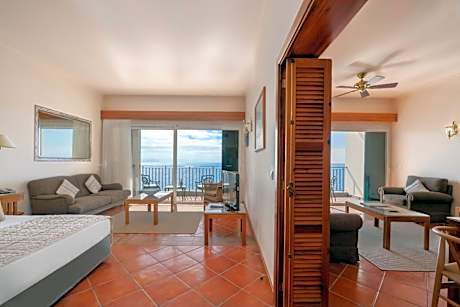 With 1312 feet of private sea front, the 5-star property offers spacious rooms all with balcony and views of the Atlantic and the Deserted Islands. Two seawater pools at sea level and a third, fresh water (heated) pool at the hotel level. Our rooms feature bright, contemporary decor with nautical motifs and traditional hand-painted tile panels. Bathrooms have double washbasins and bidet. Bathrobes and slippers are provided for each guest. Guests can relax by the pools and enjoy views over Santa Cruz Bay, play tennis, or practice their swing at Santo da Serra championship golf course 5 mi away. The Hibiscus à la carte restaurant features a Mediterranean menu and local dishes in a dining room with stunning sea views. The outdoor terrace provides spectacular views of sunsets or leisurely breakfasts in the morning sun. Guests can also eat outdoors by the pool. Free wi-fi throughout. Albatroz is entirely energy self-sufficient. Funchal is a 20-minute drive away and the island's beautiful villages within easy reach. Complimentary parking available at the hotel. Reception is staffed 24/7 to help ensure our guests have a comfortable ‘Albatroz night’ every night. Complimentary airport shuttles to and from Madeira Airport between 8 am and midnight (on weekdays) are available by arrangement.