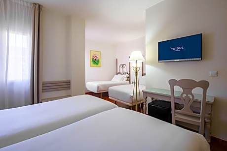Located just 20 minutes' drive from the beaches of the Costa de Luz, this hotel is decorated in cheerful colors with a very pleasant glass-roofed lounge and a typically Andalusian central courtyard. Crisol Chiclana features bold colors, creating a warm, welcoming atmosphere. Enjoy a good book or write your postcards in the cool and inviting central courtyard and read the newspaper in the communal lounge. Located in the town center, Crisol Chiclana offers easy access to the town's shops, bars and restaurants. You can stroll around the pleasant streets and charming squares, while enjoying the sunshine and the characteristic Andalusian architecture. Sleep well in the spacious rooms with attractive terracotta floors and large windows letting in plenty of natural light. We have parking available for €12.00 per night, which must be reserved in advance.