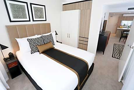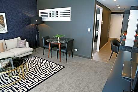 Couture lifestyle meets intelligent luxury in the Alex Perry Hotel & Apartments, located in the Brisbane Fortitude Valley. Each room encompasses all the benefits of the floor to ceiling glazing, including natural light and stunning views of the city. Guests can keep entertained in the comfort of their rooms with free cable channels and iPod docking stations. The stylish rooms feature individually zoned climate control air-conditioning, providing comfort all year round. All rooms include fully self-contained kitchens with top quality Neff kitchen appliances. Features include an outdoor pool and sun terrace if you’re looking to relax and soak up the sun. Fortitude Valley City Center is only a 10-minute walk from the property, providing options of assorted cuisines to suit all tastes. Alex Perry Hotel & Apartments is only an 8-minute drive from The City Boardwalk where views of Brisbane River can be enjoyed.