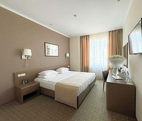 This newly built hotel is located in central Odessa, a 10-minute walk from the Derybasovska pedestrian street. Free secured parking is available. The Aleksandrovskiy Hotel offers free Wi-Fi, and all rooms have a flat-screen TV. The air-conditioned rooms at the Aleksandrovskiy Odessa are individually furnished in a classic style. All rooms include a desk and a private bathroom with bathrobes and slippers. A continental breakfast is provided each morning. Drinks and snacks are also available at the bar. The 24-hour reception at the Aleksandrovskiy offers car hire, bicycle rental and a ticket service. A shuttle service is available to Odessa Central Station (1.9 mi) and Odessa International Airport (5.6 mi).
