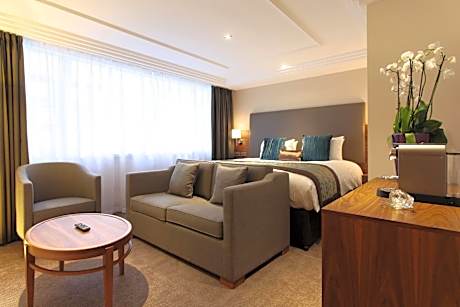 Located at the west end Oxford Street and just 2 minutes' walk from Hyde Park, The Marble Arch Hotel, by Thistle (formerly the Thistle Hotel Marble Arch) features unlimited, fast, free WiFi, a free mini-bar in every room and Nespresso® machines in all rooms. London's famed West End is less than a mile away. With stylish Hypnos beds, the spacious rooms each have a flat-screen Smart TV, an private bathroom with a rainfall shower and complimentary toiletries. There is also a mini-bar, tea and coffee making facilities, bathrobes and a work desk. The Marble Arch Hotel, by Thistle also has an impressive range of business facilities, including 13 meeting spaces catering from between 2 and 500 people, business center, on-hand audio/visual team and gym facilities. The Grill is an all-day dining venue offering classic steaks and seasonal dishes. An A La Carte breakfast is available each morning in the restaurant, a time slot needs to be booked in advance. The Bar serves an array of wines, spirits, beers and local ales. The Deli counter also serves tea and coffee, snacks, home-made salads, paninis and cakes. The financial district is only 10 minutes away via the underground and Selfridges is just a 5-minute walk away. Park Lane is 4 minutes' walk from the property.