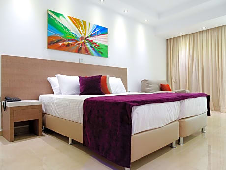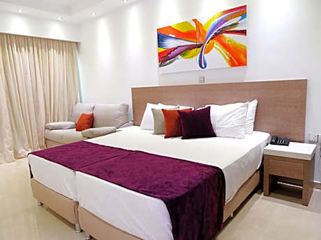 Set 2953 feet from WaterWorld Ayia Napa in Ayia Napa, Amethyst Napa Hotel & Spa features an outdoor swimming pool and spa center. Free WiFi is provided throughout. Amethyst Napa Hotel & Spa offers modern rooms decorated in soft summer colors with wooden furnishings. Each is equipped with a flat-screen TV, safe box, iron and air-conditioning. Each room features pool and Mediterranean Sea views. Some suites are fitted with a private outdoor jetted tub. Other amenities include the main restaurant with a separate adult sitting area and an a la carte restaurant. There is also an on-site cafeteria, a pool bar, a kid’s pool and a playground. Amethyst Napa offers a wellness center that includes free use of gym, indoor jetted tub and indoor pool. Sauna, steam bath and beauty facilities, as well as massage therapies are available upon charge. The lively Ayia Napa is only a 5-minute drive away, while the nearest bus stop lies within a short stroll of the property. Larnaca International Airport is 20 mi away.