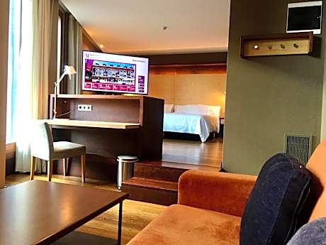 This modern and spacious room offers free WiFi, flat-screen TV The bathroom and the room are separated by a decorated glass door.
