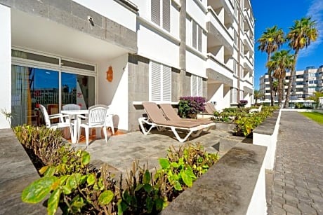 From a beautiful view of the sunsets over the sea, to the paths full of natural green areas that surround the place, this apartment complex enjoys a privileged location, a few steps from Playa del Ingles in the heart of the island of Gran Canaria . With a minimalist, practical and cozy architecture, the hotel offers rooms for a guaranteed rest. Its pool area invites the whole family to swim and cool off, take the best sunbathing at the edge of the pool or on the famous Playa del Ingles. Sports fans can visit the busy Maspalomas golf course that is only two kilometers away. To get a closer experience with the local culture, public transportation allows visitors to shop at the Mall less than a kilometer away, where it is easy to find restaurants, entertainment and center areas where nightlife is enjoyed from the locality. It is an excellent place to visit with family, in the company of the couple or with friends.