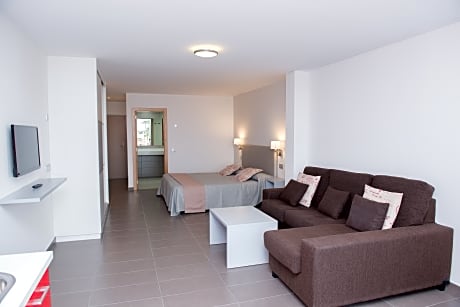 This aparthotel offers a tranquil escape near the beach and La Sandía shopping centre. Yumbo and Cita shopping centres are just 300 meters away, with public transport and the beach within 150 meters. The airport is approximately 30 kilometers away. Set within expansive gardens, the complex offers incredible city views. Each cozy apartment features a bedroom with amenities such as internet access and a private terrace. Guests can also enjoy an outdoor swimming pool with a children's area and a sun terrace, as well as the gardens, perfect for leisurely strolls or keeping fit.