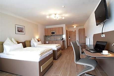 Located in the town of Asbach-Bäumenheim, the family-run Aparthotel Donaustern offers comfortable rooms, a 30-minute drive from the Augsburg conference grounds. Free Wi-Fi access is available in the hotel. The spacious rooms at Aparthotel Donaustern are designed in classic style. They include a seating area, cable TV, a balcony, and an private bathroom. There is a drinks vending machine at the property. Within a 10-minute walk of the hotel there are various restaurants specializing in German and international cuisine. Aparthotel Donaustern is 0.9 mi from Bäumenheim Train Station, and it is a 25-minute drive to the A8 motorway. Free private parking is available on site at the hotel.