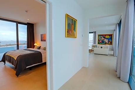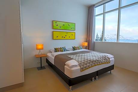 Located in Hjalteyri, 12 mi from Akureyri, Apt. Hotel Hjalteyri features views of the sea and the mountains from every apartment. Every room has a flat-screen TV and a private bathroom. All guests have access to a communal hot tub and can enjoy a drink at the snack bar. Free WiFi is available throughout the property and free private parking is available on site. The penthouse apartment has a private sun terrace and a 360 degrees view of the mountains and the sea.