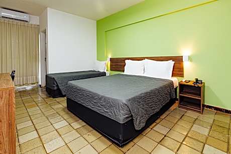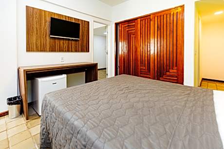 This air-conditioned city hotel in Maceió is just one block from the beach and close to restaurants, bars, clubs, banks, a craft market, and a convention center. Its 84 clean and comfortable rooms offer en suite bathrooms with showers and hairdryers, double beds, cable TV, radios, hi-fis, internet access, kitchenettes with fridges and minibars, air conditioning, and balconies with city or beach views. The hotel features a 24-hour reception, lift, newspaper stand, restaurant, coffee shop, Wi-Fi, room and laundry services, and on-site parking (R$15 per day). Guests can enjoy the outdoor swimming pool and nearby sandy beach. A breakfast buffet, set-menu lunch, and à la carte dinner are available. Please note, messenger service is not provided.