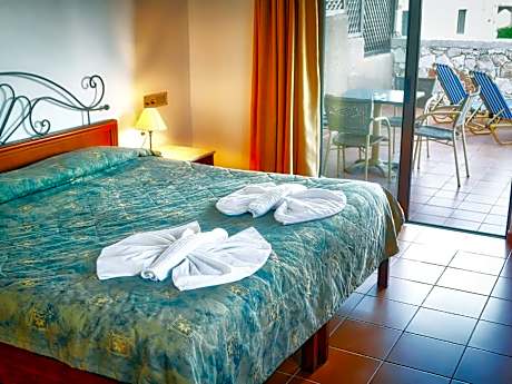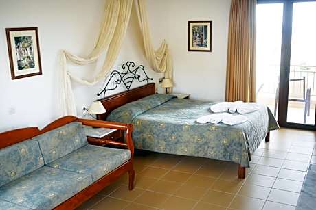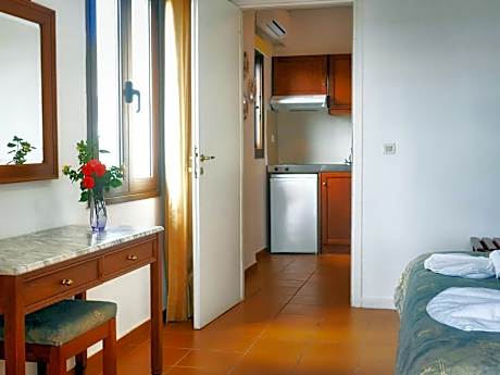 Areti aparthotel is located in the picturesque village of Megala Chorafia, east of Chania, on Crete Island. It offers self-catering accommodations and has a swimming pool with poolside bar. It views the White Mountains to the south and the sea of Souda Bay to the north. Areti Aparthotel has a beautiful and quiet environment full of flowers, vineyards, olive trees and Cretan herbs. The family Aparthotel has been built from stone in traditional style, and offers authentic traditional furniture and decoration, also. All apartments have balconies or verandas overlooking the sea. There is a large fresh water pool with a bar, where guests may relax, while breakfast buffet is prepared daily with fruits and vegetables from the property's own garden. Local taverns with traditional cuisine and a large variety of local wines can be found near by. From here guests may explore the whole island. The closest beach is Kyani Akti of Kalyves at 2.5 mi. Just 1.2 mi away there is the ancient town of Aptera.