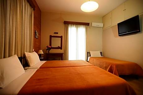 Located in a courtyard with palm trees, 1640 feet from Kanoni Beach in Perama and 1312 feet from Pontikonissi, family-run Argo Hotel offers free Wi-Fi. The air-conditioned rooms have a balcony overlooking the lush greenery of Corfu. Rooms at the Hotel Argo are simply decorated with dark wood furnishings. They are equipped with a TV and fridge. Each has a private bathroom with shower or bath. Guests can relax in the living room that has a TV. Continental breakfast is served in the dining area. Staff at the 24-hour front desk can arrange car or bicycle rentals. The center of Perama is a 5-minute walk and offers shops, traditional taverns and bars. Corfu International Airport is 3.1 mi away and the scenic town of Corfu is at 3.7 mi. Just outside the hotel there is a bus stop with routes to Corfu town and Benitses. Free private parking is possible on site.