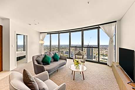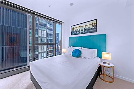 Located on levels 42 - 65 with views across Brisbane, this apartment has access to the recreational facilities on level 40 and 66. This modern, fully self-contained, 2-bedroom, 1-bathroom apartment has a well-appointed, fully equipped kitchen. There is a dining and living area, laundry facilities, and free unlimited WiFi.