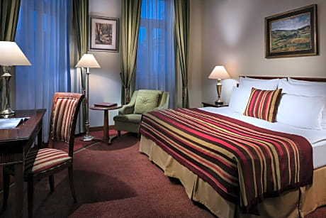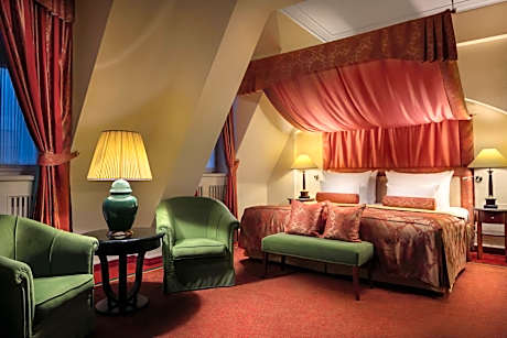 Situato in posizione ideale nel centro di Praga, l'Art Nouveau Palace Hotel offre camere climatizzate con WiFi gratuito, parcheggio privato e servizio in camera. Questo hotel a 5 stelle offre un salone in comune e un bancomat. La struttura fornisce il servizio di trasferimento aeroportuale e il noleggio biciclette. Tutte le camere dell'hotel sono dotate di scrivania. Le camere dispongono di bagno privato con set di cortesia, mentre alcune regalano viste sulla città. Tutte le camere dell'Art Nouveau Palace Hotel sono dotate di TV a schermo piatto con canali satellitari e cassaforte. La struttura serve una colazione a buffet, alla carta o continentale. Presso la struttura troverete un ristorante di cucina internazionale. Su richiesta sono disponibili anche opzioni vegetariane, vegane e senza glutine. Gli ospiti possono usufruire del centro business o rilassarsi al bar. Il personale della reception parla ceco, tedesco, inglese e francese ed è disponibile a qualsiasi ora del giorno. Tra i luoghi di interesse più popolari nelle vicinanze dell'Art Nouveau Palace Hotel figurano l'edificio storico del Museo Nazionale di Praga, la Casa Municipale e l'Orologio Astronomico di Praga. L'Aeroporto di Praga-Ruzyně dista 15 km.