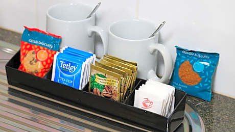 Features 2 separate bedrooms, each with its own TV. It has a small fridge, a microwave, tea and coffee making facilities and a shared bathroom.