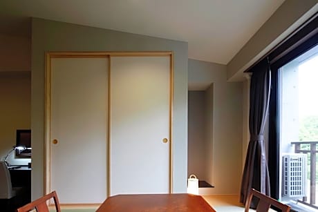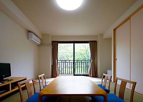 The quadruple room offers air conditioning, tatami, as well as a shared bathroom boasting a hairdryer. This quadruple room features an electric kettle and a flat-screen TV. The unit has 4 futons.