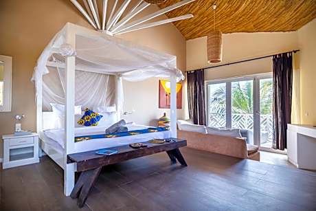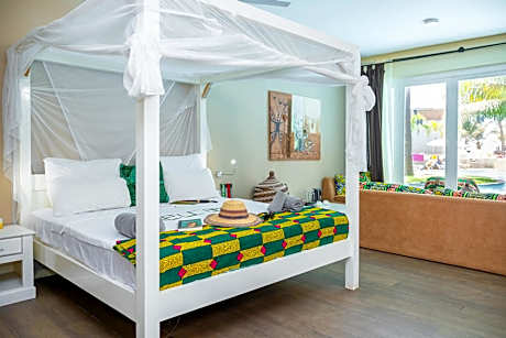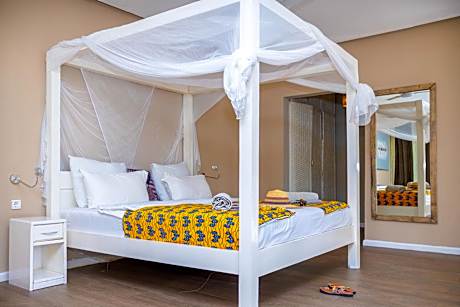 Located in Kololi, 0.9 mi from Senegambia Beach with its strip of retaurants and bars, Balafon Beach Resort features accommodations with a restaurant, free private parking, a fitness center and a bar. Among the various facilities of this property are a garden, a private beach area. The accommodations provides a 24-hour front desk, room service and currency exchange for guests. The rooms are fitted with air conditioning, a flat-screen TV with satellite channels, a fridge, a kettle, a shower, a hairdryer and a desk. With a private bathroom, rooms at the hotel also boast pool view. At Balafon Beach Resort, rooms include a seating area. Guests at the accommodations can enjoy a buffet breakfast. Balafon Beach Resort offers a terrace. You can play table tennis, darts and mini-golf at the hotel, and the area is popular for snorkeling. Guests can make use of the business center, rent a car to explore the area, or buy a gift at the souvenir shop. Little Monkey Zoo (Bijilo Monkey Park) (Banjul) is 1.2 mi from Balafon Beach Resort.