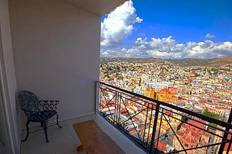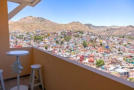 Hotel Balcón del Cielo is the hotel with one of the best views of Guanajuato, in an unbeatable location to enjoy the city. Travel as many times as you want and without waiting in lines for the Funicular to transport you in 5 minutes to the historic center or back to your room. Included in your stay. Each room at Hotel Balcón del Cielo has windows, a balcony or terrace with panoramic views of the city. All rooms are decorated in soft colors and equipped with cable TV. The hotel is located next to the Pípila monument, on a hill in the upper part of the city. The rack railway connects with the historic center of the city in less than 5 minutes. Have breakfast in your room or in our comfortable restaurant.