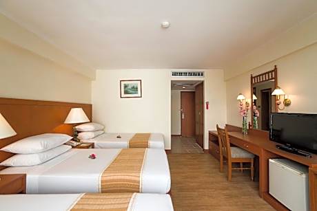 Bangkok Palace Hotel offers top-notch services and amenities, ensuring guests experience utmost comfort.Maintain seamless communication using the complimentary Wi-Fi at hotel.Discovering Bangkok becomes even more accessible through the taxi and car hire amenities provided at the hotel. For visitors traveling by automobile, complimentary parking is available. During your stay at this fantastic hotel, the attentive front desk personnel can provide you with a range of amenities such as concierge service, express check-in or check-out, luggage storage and safety deposit boxes. In search of city's top entertainment, seek assistance at the hotel's ticket service and tours for reservations.At the hotel, utilize the on-site dry cleaning service and laundry service to maintain your beloved travel attire fresh, allowing you to bring fewer clothes. Craving relaxation? Make the most of your stay at the Bangkok Palace Hotel with convenient amenities like 24-hour room service, room service and daily housekeeping at your disposal. For all your minor, last-minute requirements, the convenience stores can promptly cater to them, eliminating the need to venture out. For visitors wishing to smoke, designated smoking zones can be found.At Bangkok Palace Hotel, every guestroom is provided with convenient amenities and fittings to ensure a comfortable stay.Enhance your experience at hotel with the knowledge that certain rooms are equipped with linen service, blackout curtains and air conditioning for your convenience.A few accommodations within Bangkok Palace Hotel offer unique design elements such as a separate living room.Certain rooms boast in-room amusement features such as television and cable TV, offering guests an enjoyable stay. In select rooms within the hotel, a refrigerator, bottled water, a coffee or tea maker, instant coffee, instant tea and mini bar is available to cater to your requirements when desired. In the hotel, certain guest bathrooms come equipped with essential bathroom amenities, such as a hair dryer, toiletries, bathrobes and towels, ensuring a comfortable stay for guests. Begin your day with a scrumptious on-site breakfast available each morning at Bangkok Palace Hotel. Begin your day feeling refreshed and invigorated as you enjoy a delightful cup of quality coffee available at the cafe situated within the hotel. At the hotel, an assortment of easily accessible and delicious meal choices are available to satisfy your appetite whenever it strikes.Bangkok Palace Hotel provides a superb assortment of leisure amenities for guests to enjoy.Conclude your holiday perfectly with a visit to spa and sauna on your final days. Be sure to drop by the pool at hotel at least once during your stay.At Bangkok Palace Hotel, utmost care is taken to ensure guests' comfort. Relish your preferred beverage in your swimwear by the hotel's poolside bar.Discover the fitness amenities at hotel to maintain your health and strength during your getaway.