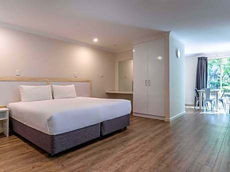 Surrounded by whispering peppermint trees and fringed by the white sand shores of Geographe Bay, Bayview Geographe Resort combines secluded private villas with sociable, family-friendly facilities. Whether you’re planning a romantic honeymoon in Western Australia or traveling with friends, there are 1,000 ways to spend your days at our Busselton beach resort. Take a peaceful stroll through beautifully tended gardens or enjoy some sporting action on our tennis and beach volleyball courts. It’s a few steps to the beach, where you can swim, snorkel, sunbathe or simply enjoy the endless Indian Ocean views. Children and the little ones are welcome at our heated indoor pool. The grounds are studded with communal barbecue facilities, while the larger modern villas include their own kitchens. The largest villas sleep up to 8 people – making our resort the perfect choice for your family holiday in Western Australia. For many guests, the resort is a peaceful base from which to explore the best of the Margaret River region. Our friendly staff are on hand to offer recommendations about Busselton wine tours or to give directions to the best beaches on the Cape Naturaliste peninsula. You’re a 10-minute drive from Busselton town center, where you can marvel at historic Busselton Jetty, a Western Australia landmark famous for being almost 1.2 mi long. You can also experience some rare native flora and fauna in nearby Leeuwin-Naturaliste National Park. This coastal park epitomizes the area’s dramatic natural beauty, with rugged cliffs, hidden coves and a network of stalactite-filled limestone caves. The best way to explore the area is by car, which is why we provide ample free parking with space for caravans and boat trailers too