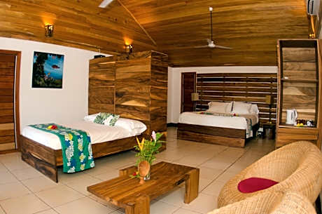 Located on Beqa Island, this beachfront resort is surrounded by tropical gardens and offers a restaurant, a bar and swimming pool. Guests have free use of kayaks and can go diving on the lovely coral reef. Enjoy a massage or treatment at the open-air beachfront day spa or just relax on the sun terrace beside the pool. There is daily cultural activities and entertainment including Fijian dancing, fire walking and kava ceremonies. All bungalows are air conditioned and feature traditional island décor. Each has a marble bathroom, a refrigerator and tea/coffee making facilities. All beachfront bungalows have a private dipping pool. The poolside restaurant offers an à la carte menu using fresh local fish, New Zealand lamb and Australian beef. The Bula Bar serves a range of imported wine and beer, Fijian beer and cocktails. Beqa Lagoon Resort offers world class diving options including the famous shark and big fish encounter for an additional charge.