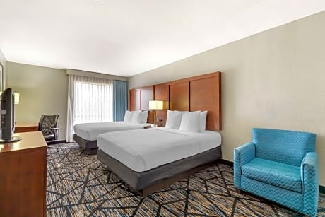 This hotel is a 15-minute drive from SeaWorld San Antonio and 10.4 miles from San Antonio International Airport. It features an outdoor pool, an on-site gym, and free Wi-Fi. The Best Western near Lackland AFB/Sea World furnishes every room with a microwave, refrigerator, and coffee maker. Guests can relax and watch cable channels on the flat-screen TV. A business center with fax and photocopying services is available at this San Antonio hotel. The front desk is open 24 hours a day. A hot continental breakfast including eggs, biscuits, and choice of breakfast meat is served each morning at Ingram Park Best Western. Six Flags Fiesta Amusement Park is a 20-minute drive from the Ingram Park Best Western. Downtown San Antonio is 13 miles away.