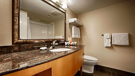 Located in British Columbia, this hotel is a 10-minute drive from Kelowna International Airport. This hotel features an on-site restaurant, a full-service spa, indoor heated mineral pool, a gym and free Wi-Fi. Guest rooms at the Kelowna Best Western include a 40-inch flat-screen TV and an iPod docking station. Select rooms include a small refrigerator. The restaurant is serving Dinner only from 17:00 - 21:00. The Pub is open for Lunch and Dinner from 11:00 to late, daily. The Hotel provides a complimentary hot breakfast buffet in the Atrium from 06:30 - 10:00. The Kelowna Best Western Hotel and Suites provides 2 outdoor hot tubs. Guests can get a massage or use the full-service conference center. Okanagan College is a 10-minute drive from the Best Western Kelowna. The hotel is minutes from Okanagan Highway and a 5-minute drive from downtown Kelowna.