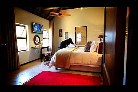 Blue Hills Lodge in Midrand provides accommodations with a garden, a bar, and barbecue facilities. Both free Wifi and parking on-site are accessible at the bed and breakfast free of charge. The bed and breakfast features an outdoor swimming pool and a shared kitchen. At the bed and breakfast, each unit has a desk, a flat-screen TV, a private bathroom, bed linen, and towels. Each room has a kettle, while some rooms include a fully equipped kitchenette with a microwave, a toaster, and a stovetop. Buffet and à la carte breakfast options with warm dishes, fruit, and juice are available. Guests can also relax in the shared lounge area. Gallagher Convention Centre is 5.1 miles from Blue Hills Lodge, while Montecasino is 7.7 miles from the property. O.R. Tambo International Airport is 17 miles away.