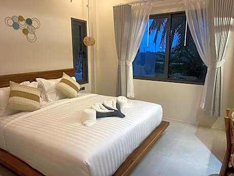 Located in Wok Tum, Breeze Bay Villas Koh Phangan features a terrace and views of the sea. Free WiFi is available throughout the property. Each bungalow has a private balcony with a hammock. It is air conditioned and features a flat-screen TV with satellite channels. There is also a kitchen, equipped with a microwave and fridge, mini-bar and kettle. Free private parking is also available at this villa. Towels are offered. Bay Breeze Villa is a 10-minute drive from the city center and Thongsala Pier. A 30-minute ride brings guests to Haad Rin Beach where the popular Full Moon Party takes place.