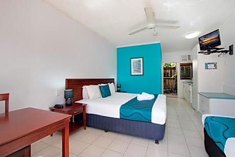 Cairns City Palms self-contained suites and apartments are located 20 minutes' walk from the center of Cairns, and a 10-minute drive from Cairns Airport.5-minute walk away you will find supermarkets, restaurants, bars, bottle shops, a fitness center and other take away food outlets. Free WiFi is available throughout the motel. The Palms Private Lounge gives guests access to a TV, computer terminal with free printing facilities along with a shower and toilet. Free tea, coffee, juice and water are provided throughout the day. From 8:00 until 11:00 each morning, free homemade scones with cream and a selection of spreads are offered. Guest facilities include a tropical outdoor swimming pool with a Balinese style hut, pool side tables with chairs and sun lounges for guests to relax and enjoy the year-round warm weather. Escape the sun in the Palms Garden Hut which features barbecue facilities with table and chairs, a TV and refrigerator. Guest laundry, onsite parking (subject to availability) and luggage storage is also available. If you are visiting the Cairns region to enjoy the outdoor activities, the tour desk can assist. Guests receive 10% off all tour bookings. Other close by attractions include the Cairns Central Shopping Center, Cairns Civic Theater, Cairns Convention Center, Cruise Ship Terminal, Cairns Museum, botanical gardens, Cairns Marina, Reef Casino, night markets and Munro Martin Parklands. Cairns City Palms is located in the beautiful Tropical North Queensland city of Cairns. Cairns is Australia's gateway to the Great Barrier Reef and is surrounded by rainforest covered mountains.