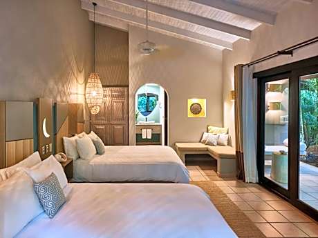 This charming hotel is on Langosta Beach in Costa Rica’s Guanacaste region. Located within tropical gardens, it offers spacious rooms and villas with a private pool, free Wi-Fi and a private beach area. Rooms and villas at Cala Luna offer unique décor, with cream tones and dark wood furniture. All include a patio with garden views and a lounge area with minibar, sofa, satellite TV and safe. The Cala Moresca Restaurant serves Italian fusion dishes and seafood, while the La Caletta Lounge offers refreshing cocktails on the terrace and fresh sushi. The resort’s center is a 10-minute walk away. There is a large outdoor pool and massage services are available. The hotel organizes trips and activities, including quad biking, fishing, jungle boat safaris and horseback riding. Cala Luna Boutique Hotel & Villas offers car rental and free private parking. It also runs a shuttle service for a fee and is 65 km from Daniel Oduber International Airport.