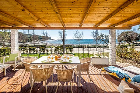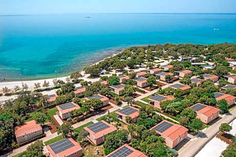 Mon Perin Camping Resort is located by the sea, with 5.9 mi of coastline. It covers an area of 1312 ft² and is surrounded by untouched natural scenery. Accommodations options range from cozy camping homes and villas to luxurious glamping villas with private pools or hot tubs. All types of accommodations include air-conditioned spaces, a fully equipped kitchen and dining area, a comfortable living room with a flat-screen TV and satellite channels, as well as a bathroom with a shower and complimentary toiletries. A carefree vacation is ensured with free Wi-Fi and complimentary parking spaces. The camping resort is an ideal destination for nature lovers, adventure seekers, food enthusiasts and those who appreciate true relaxation Guests have access to Palo Water Park with a dinosaur shaped pool, Fresh Market & Farm, inflatable aqua park, outdoor cinema on the beach and free panoramic train ride through the camp to Bale. The camp has a Wellness & Spa Center (18+) with indoor and outdoor heated seawater pools, three types of saunas, a tropical shower, a salt room and a relaxation room. Entrance to the wellness pools is free for all camping homes and villas. For select accommodations units, access to the spa center comes at an additional fee. The spa center also offers a range of cosmetic treatments and massages at an extra cost. Inside the campground, guests can also enjoy various activities such as diving school, windsurfing, standup paddle boarding, and a multifunctional sports field, available for an additional charge. The romantic coastal town of Rovinj is just 12 mi away, while Pula Airport is 20 mi from the campground.