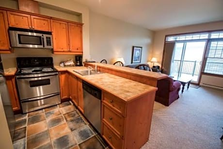 This large suite offers a full kitchen, washing machine and clothes dryer, fireplace, and sofa bed. BBQ facilities are available on the patio from May 20 to October 1 each year.
