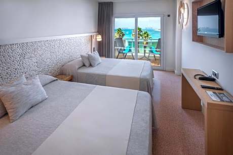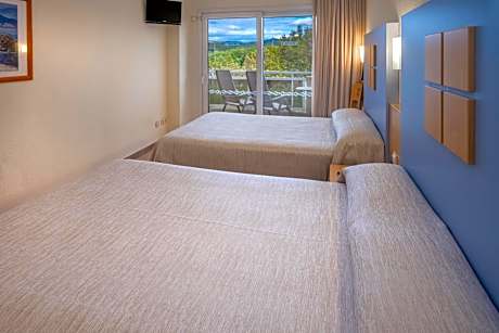 Featuring a terrace and offering views of the garden, the mountains, the pool or the sea, this room has air conditioning and a small fridge. The bathroom has a shower and hairdryer. The room comes with 1 double bed and 1 single bed or 3 single beds.