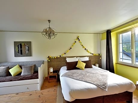 This double room has a TVr, tea/coffee maker and seating area.