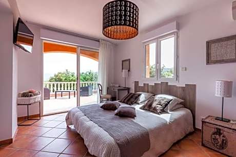 Chez Marc et Jeannick in Belvédère provides adults-only accommodations with an open-air bath and a garden. With mountain views, this accommodation offers a balcony. The bed and breakfast provides sea views, a seasonal outdoor pool, and free Wifi is available throughout the property. The units at the bed and breakfast feature private entrance and soundproofing so guests can enjoy a peaceful stay. A terrace, a satellite flat-screen TV streaming services, an air conditioning, and a heating are provided in each unit. At the bed and breakfast, all units come with a private bathroom with a hair dryer and free toiletries. À la carte and continental breakfast options with fresh pastries, pancakes, and fruit are available. There is an on-site coffee shop. If you like to discover the area, snorkeling, hiking and walking tours are possible in the surroundings and the bed and breakfast can arrange a car rental service. Propriano Port is 8.6 miles from Chez Marc et Jeannick, while The Lion of Roccapina is 22 miles away. Figari-Sud Corse Airport is 30 miles from the property.