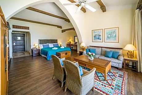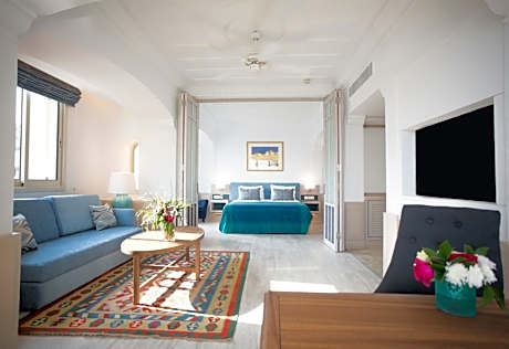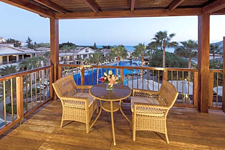 Located right on Pissouri Bay Beach, Columbia Beach Resort is set within extensive landscaped gardens. It has 2 swimming pools, one of which is an 262 foot lagoon-style pool, 3 restaurants and 6 bars. All suites have stone floors, natural wood furnishings and shutters, and overhead ceiling fans to keep them cool. Each has a balcony with views of the gardens or the sea. Facilities include Nespresso coffee makers, Molton Brown toiletries, bathrobes and slippers. The on-site Apollo Tavern serves all-day à la carte local cuisine, including Cypriot meze. Bacchus Restaurant serves Italian gourmet and Cape Aspro offers al fresco dining with Asian inspired fare. On select nights all 3 restaurants are accompanied by resident musicians. The on-site Eros Cocktail Bar features superb views of the surrounding areas. There are also 1 beach bar, 2 pool bars, the Seven C's Bar and the Ouzeri. The Columbia Beach Resort’s Hébe Spa features 6 treatment rooms, a hot tub, plunge pool, and a gym. The aerobic room offers a regular schedule of fitness classes and yoga. The Den Kids Club and Cub Life Creche are available. Within 5.3 mi, you can visit the famous Rock of Aphrodite. Paphos Airport is 16 mi away, while at 22 mi you can reach the seaside city of Limassol.