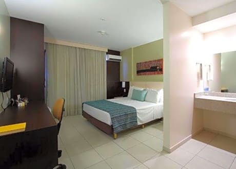 Comfort Hotel Goiânia (Centro de Convenções) is 5 mi from Santa Genoveva Airport. It features a sauna, fitness center and free WiFi in the lobby. All rooms at Comfort Hotel Goiânia are equipped with air conditioning and cable TV. In addition every room features a telephone, a hairdryer and an alarm clock. Wired internet is also available. Aruanã Restaurante serves a hot buffet breakfast every morning, and is also open for lunch and dinner. There is also a hotel bar, and there are several other restaurants within a few minutes’ walk of the hotel. Guests can make use of the fitness center or enjoy a relaxing steam bath. Comfort Hotel Goiânia is 5 mi from Parque Areião and 10 mi from Autódromo Internacional Ayrton Senna. Parking is available on site, and charges are applicable.