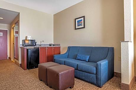 Located right off Interstate 20, the Comfort Inn & Suites Clinton - Jackson West hotel is convenient to Jackson State University, Mississippi College, the Mississippi State Tax Commission, Clinton Parks and Recreation fields and Jackson-Evers International Airport. This Clinton, MS hotel is also close to attractions like Mississippi Veterans Memorial Stadium, Ameristar Casino and Horizon Casino. Modern guest rooms are complete with refrigerators, microwaves, coffee makers, desks, flat-screen televisions, hair dryers, irons and ironing boards. Select rooms feature additional amenities, such as whirlpool bathtubs and sofa sleepers. A Suite Shop, laundry facilities and valet cleaning services are located on the premises. Hotel amenities and features include the following: Free wireless high-speed Internet access; Free local calls; Free newspaper; Indoor heated pool. Enjoy free hot breakfast featuring eggs, meat, yogurt, fresh fruit, cereal and more, including your choice of hot waffle flavors! Business travelers staying at this Clinton, MS hotel will be pleased with access to copy and fax services to meet their work deadlines. Meeting space is available. Area golf courses and shopping centers such as Dogwood Mall, Northpark Mall, Metrocenter Mall and the Renaissance shopping center are located nearby. Several restaurants are within walking distance of the hotel. Corporate guests of this Mississippi hotel will be pleased with the local businesses and corporations that are located close by.