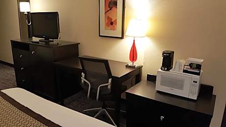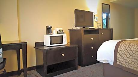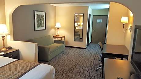 The Baymont Inn & Suites Belleville Airport Area hotel is conveniently located off Interstate 94, just eight miles from the Detroit Metropolitan Wayne County Airport and five miles from the Willow Run Airport. This Belleville, MI hotel is near many points of interest including the Arborland Mall, Belleville Lake, the Canton Sports Center, Crosswinds Marsh Wetlands Interpretive Preserve and the Henry Ford Museum. The Wayne County Fairgrounds, Westland Center mall and the Yankee Air Museum are also close to the hotel. Superior amenities and features are offered like: free USA Today, free wireless high-speed Internet access. A year-round, indoor heated pool is available. Breakfast has hot and cold options featuring eggs, meat, yogurt and fresh fruit, cereal and more, including your choice of hot waffle flavors! Business travelers to this Michigan hotel will appreciate conveniences like multiple telephone lines with voice mail and access to copy and fax services. There are also meeting and banquet rooms available. Every room comes equipped with free movie channels, irons and ironing boards. All rooms have microwaves and refrigerators. Hot tub rooms are also available. The hotel also offers a guest laundry area. Pets are welcome for a small nightly fee.