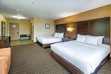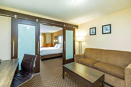 Halfway between Vancouver and Calgary and located at the top of a hill overlooking downtown and Shuswap Lake, the Comfort Inn & Suites is minutes from a variety of shopping attractions and directly across the street from the Shaw Center, home of the Salmon Arm Silverbacks hockey team. Guests of this hotel can: Take in the annual Roots & Blues Festival in the summer, Become engrossed in the 10-acre corn maze at De Mille's Farm Market, Visit award-winning Larch Hills Winery, Tee off at the Canoe Creek Golf Course and other surrounding golf courses, Flock to Shuswap Lake to view more than 250 bird species and marvel at the beautiful scenery and Witness the spawning Sockeye Salmon at Adams River in September and October. Guests of the Comfort Inn & Suites will enjoy relaxing in the indoor heated pool. For added fun, slip down the waterslide. The on-site business center offers a computer with Internet, as well as copy and fax services. Our world-class banquet and meeting facilities accommodate 150 for banquets and 350 for conferences. Other amenities include: Free wireless high-speed Internet access, Free hot breakfast, Free daily newspaper and Fitness center. All tastefully decorated guest rooms offer a flat-screen television, desk, refrigerator, hair dryer, alarm clock, iron and ironing board. Some rooms feature kitchen facilities, a microwave and sofa sleeper. This is a pet-friendly hotel with four-legged friends allowed to stay for a fee. Guests must phone hotel to confirm a pet friendly room is available.