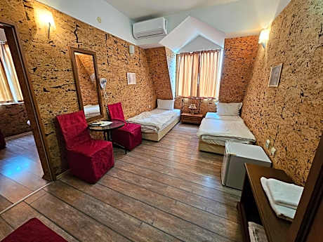 Providing free toiletries, this triple room includes a private bathroom with a shower and a hairdryer. The air-conditioned triple room provides a flat-screen TV with cable channels, soundproof walls, parquet floors, heating as well as pool views. The unit offers 2 beds.