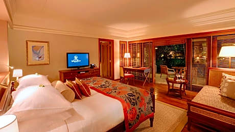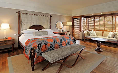 This tropical hideaway in Poste de Flacq offers luxurious air-conditioned suites and villas with Indian Ocean views. It has secluded beaches and the exclusive Le Barachois floating restaurant. There is also a spa and wellness center. The air-conditioned accommodations at the Constance Prince Maurice includes a furnished terrace overlooking the water and a living area with satellite TV. They include a fully equipped private bathroom with double vanities. Some suites are perched on stilts over the water. Grills, fresh seafood and Mauritian delicacies are served in the 2 restaurants within Constance Prince Maurice. The Laguna Bar serves drinks and various cocktails and both overlook the pool and the Indian Ocean. Guests can windsurf and snorkel on the beach. The tour desk can organize a glass bottom boat trip, trail-walk or a scenic helicopter ride over the island. Guests staying at Constance Prince Maurice have a free shuttle to two 18 hole golf courses (Links and Legends) with exceptional panoramas. Sir Seewoosagur Ramgoolam International Airport and Port Louis are within a 1-hour drive by car. Car rental is available at the 24-hour front desk and free parking is available.