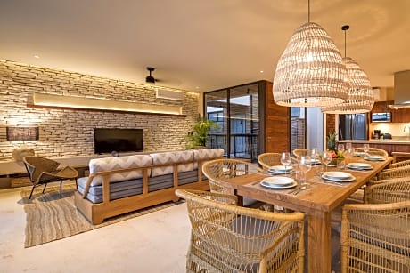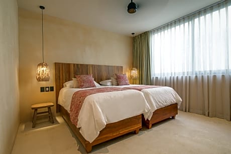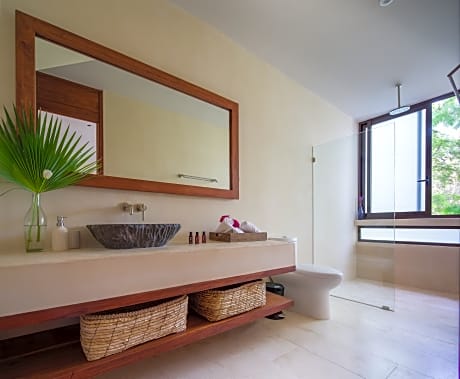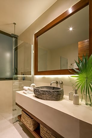 Featuring quiet street views, Copal Tulum Hotel in Tulum features accommodations, a rooftop pool, and an open-air bath. This 5-star condo hotel offers an elevator and luggage storage space. There's a sun terrace and guests can make use of free Wifi, free private parking, and an electric vehicle charging station. The condo hotel will provide guests with air-conditioned units with a desk, a safety deposit box, a flat-screen TV, a patio, and a private bathroom with a walk-in shower. Some rooms have a fully equipped kitchen with an oven, a microwave, and a toaster. At the condo hotel, each unit is fitted with bed linen and towels. An à la carte, continental, or vegetarian breakfast can be enjoyed at the property. Yoga classes and fitness classes are arranged at the fitness room in house. The area is popular for pub crawls, and bike rental and car rental are available at the condo hotel. Tulum Archeological Site is 2.9 miles from Copal Tulum Hotel, while Tulum Bus station is 1.2 miles away. Tulum International Airport is 24 miles from the property, and the property offers a paid airport shuttle service.