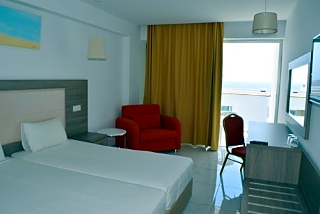 Located in Ayia Napa, a 11-minute walk from Pantachou Beach, Corfu Hotel provides accommodations with a seasonal outdoor swimming pool, free private parking, a fitness center and a garden. This 4-star hotel offers a shared lounge, room service and free WiFi. The hotel has a terrace and city views, and guests can enjoy a meal at the restaurant or a drink at the bar. At the hotel each room comes with air conditioning, a seating area, a flat-screen TV with satellite channels, a safety deposit box and a private bathroom with a shower, free toiletries and a hairdryer. Rooms are equipped with an electric tea pot, while certain rooms include a balcony and others also offer sea views. Guest rooms will provide guests with a fridge. Breakfast is available, and includes buffet, continental and vegetarian options. Corfu Hotel has a playground. Speaking Bulgarian, Greek, English and French, staff are willing to help at the 24-hour front desk. Cyprus Casinos - Ayia Napa is a 12-minute walk from the accommodation, while Agia Napa Monastery is 0.6 miles away. Larnaca International Airport is 32 miles from the property.