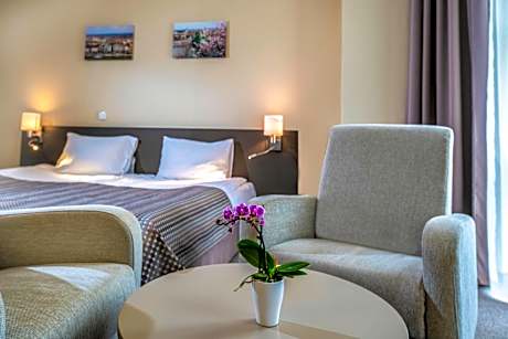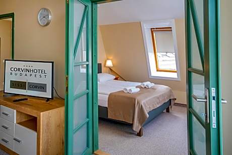 Corvin Hotel Budapest Corvin Wing offers accommodations in Budapest. Some of the rooms come with a balcony, facing the garden or the quiet street. Each room has air conditioning and is equipped with a cable TV. Private bathrooms are fitted with a shower. Staff at the 24-hour hotel reception can provide tourist with tips or reserve bicycles. The on-site bar is open around the clock and guests can access free Wi-Fi connection in public areas. With an eye for dietary requirements, the restaurant serves buffet-style international dishes. Corvin Hotel Budapest Corvin Wing is set 1148 feet from Corvin Negyed metro station. Budapest Liszt Ferenc Airport is 11 mi away. License Number(s): SZ19000483