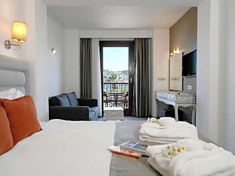 Experience an abundance of unparalleled facilities and features at Costa Farilya Special Class Hotel Bodrum.Share your photos and respond to emails at your convenience, thanks to the free Wi-Fi internet access offered by hotel.Should you require transportation to or from the airport, hotel is able to organize it prior to your arrival date.Visitors can take advantage of complimentary parking directly at the hotel. Traveling with minimal luggage is achievable at Costa Farilya Special Class Hotel Bodrum due to the hotel's laundry service ensuring your garments stay fresh.Room amenities feature daily housekeeping, allowing you to unwind and make the most of your visit. Smoking is limited to specified smoking zones. Each accommodation at Costa Farilya Special Class Hotel Bodrum is thoughtfully created and adorned to provide visitors with a comfortable, home-like atmosphere.In select rooms of the hotel, guests can enjoy the advantage of having air conditioning available for their convenience. At Costa Farilya Special Class Hotel Bodrum, the uniquely tailored rooms provide a configuration choice resembling a balcony or terrace.
