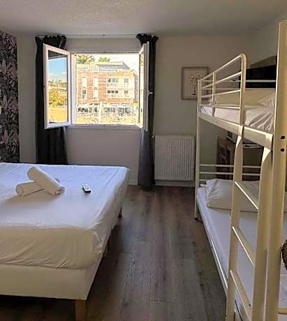 Providing free toiletries, this quadruple room includes a private bathroom with a bath and a hairdryer. The quadruple room provides a tea and coffee maker, a wardrobe, parquet floors, a flat-screen TV, as well as a quiet street view. The unit offers 2 beds.