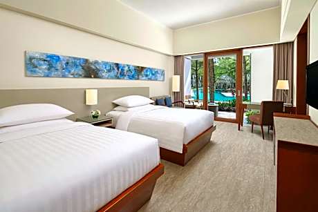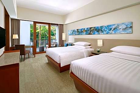 Courtyard Bali Nusa Dua Resort provides flawless service and all the necessary facilities for visitors.Parking is accessible, supplied by the hotel for guests who arrive by car. During leisurely days and evenings, in-room amenities such as 24-hour room service and daily housekeeping enable you to maximize your stay in the room.Crafted for coziness, every guestroom provides an array of features, guaranteeing a tranquil night's sleep while maintaining the level of comfort. Expand your in-room entertainment choices with various amenities, such as cable TV offered in certain accommodations. In select rooms, the hotel offers visitors access to instant tea. It is worth noting that certain guest bathrooms feature a hair dryer and bathrobes for your convenience. Each morning at Courtyard Bali Nusa Dua Resort, a scrumptious, homemade breakfast kick-starts the day.Experience a fantastic evening effortlessly! Relish an entertaining night without venturing beyond the confines of the bar.