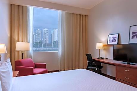 Located at the heart of the entertainment and business center of Panama City, this hotel features 2 on-site restaurants and an outdoor pool. Its spacious rooms offer free Wi-Fi and a flat-screen TV. This hotel is located within the Multiplaza Shopping Center, which offers entertainment venues, boutiques, restaurants, shops and bars. All rooms at the Courtyard Panama Real Hotel offer soundproofed windows with a view of the city. Each room includes a large work desk, a refrigerator and a coffee maker. On-site dining for all meals is available at the Pacific Grill, serving international cuisine. There is also a sushi bar and coffee shop. Free access is granted to the Panama Courtyard Hotel’s fitness room, and the on-site business center is open 24/7. The outdoor pool is surrounded by a sun deck for relaxation. Guests will find Costa del Este Business Park within a 15-minute drive. Torre Las Americas is located right next to the hotel, while the Panama Canal and the Tocumen International Airport are both a 15-minute drive away.